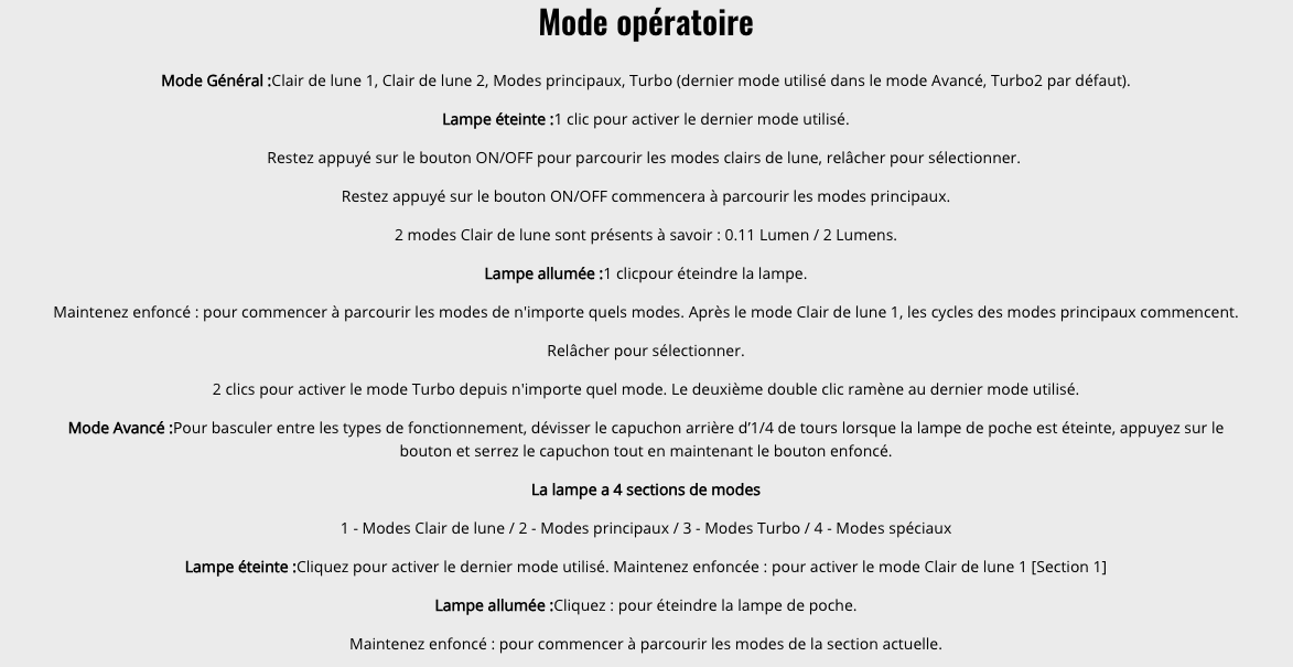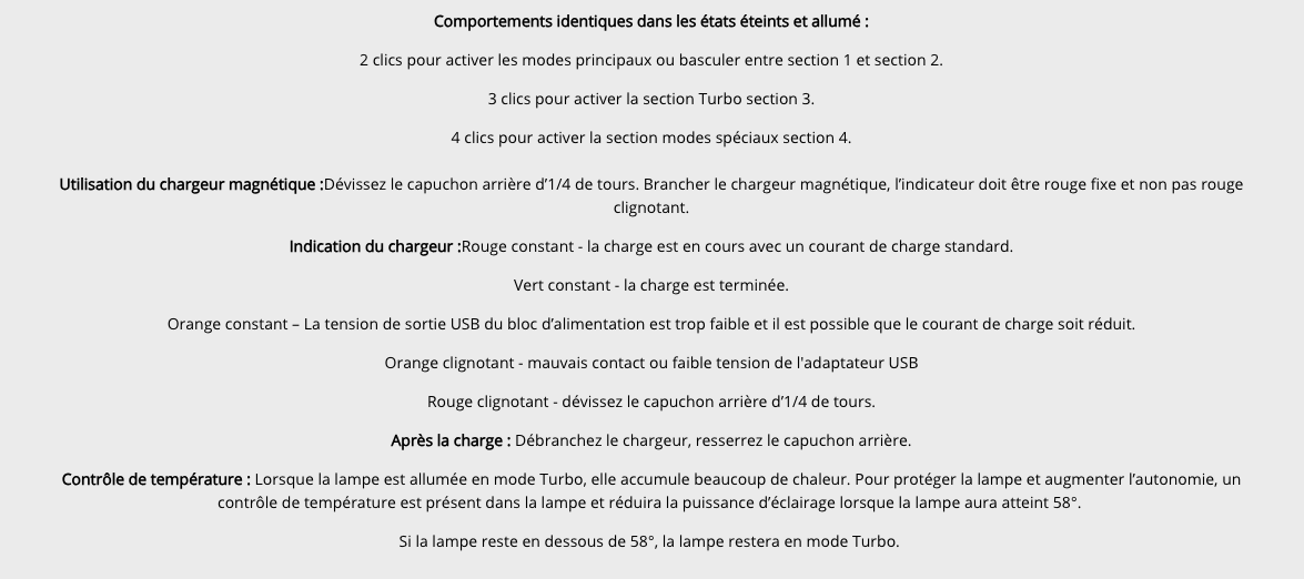- Crochet d'attache : Accrochez la lampe à votre sac à dos ou à tout autre support pour un transport facile et un accès rapide.